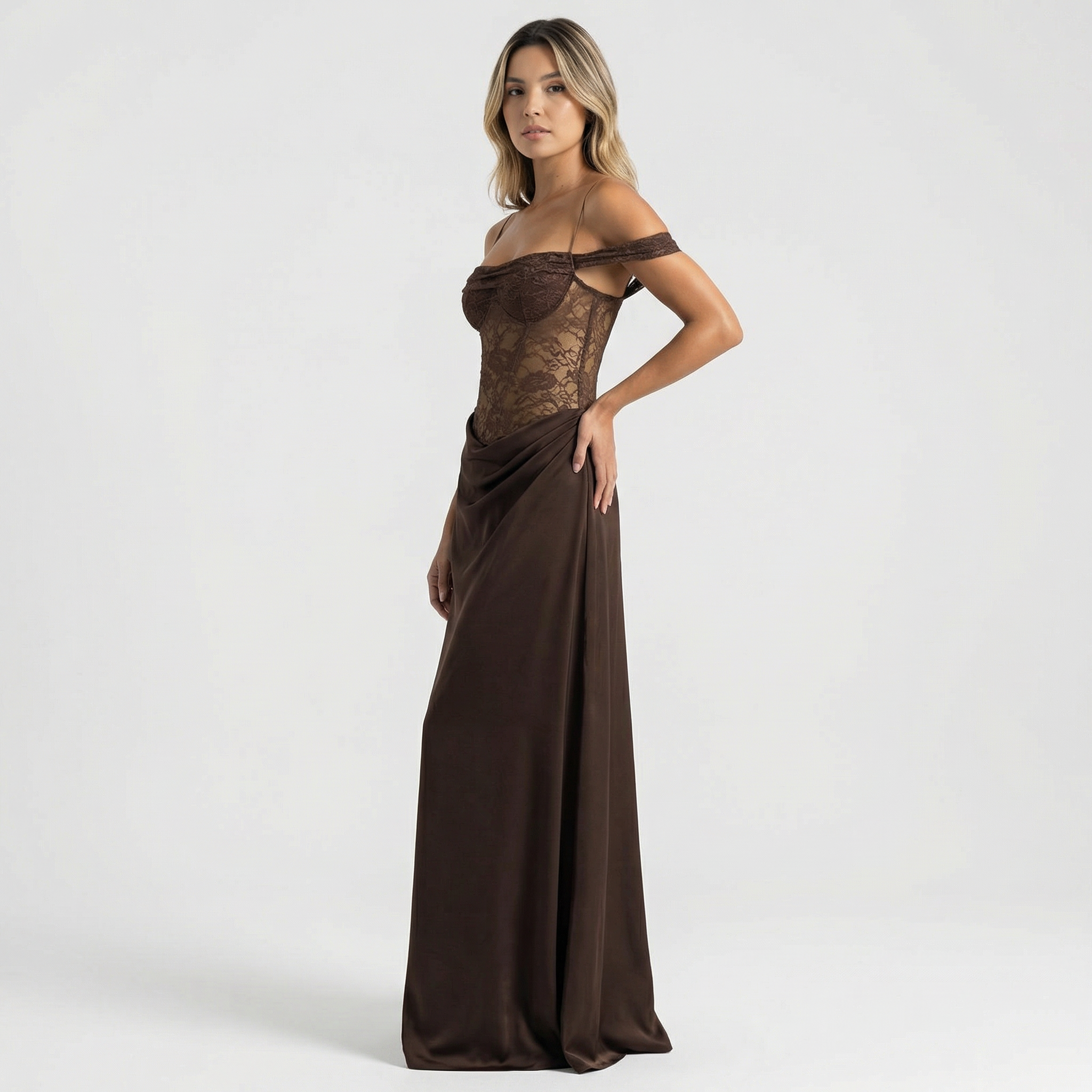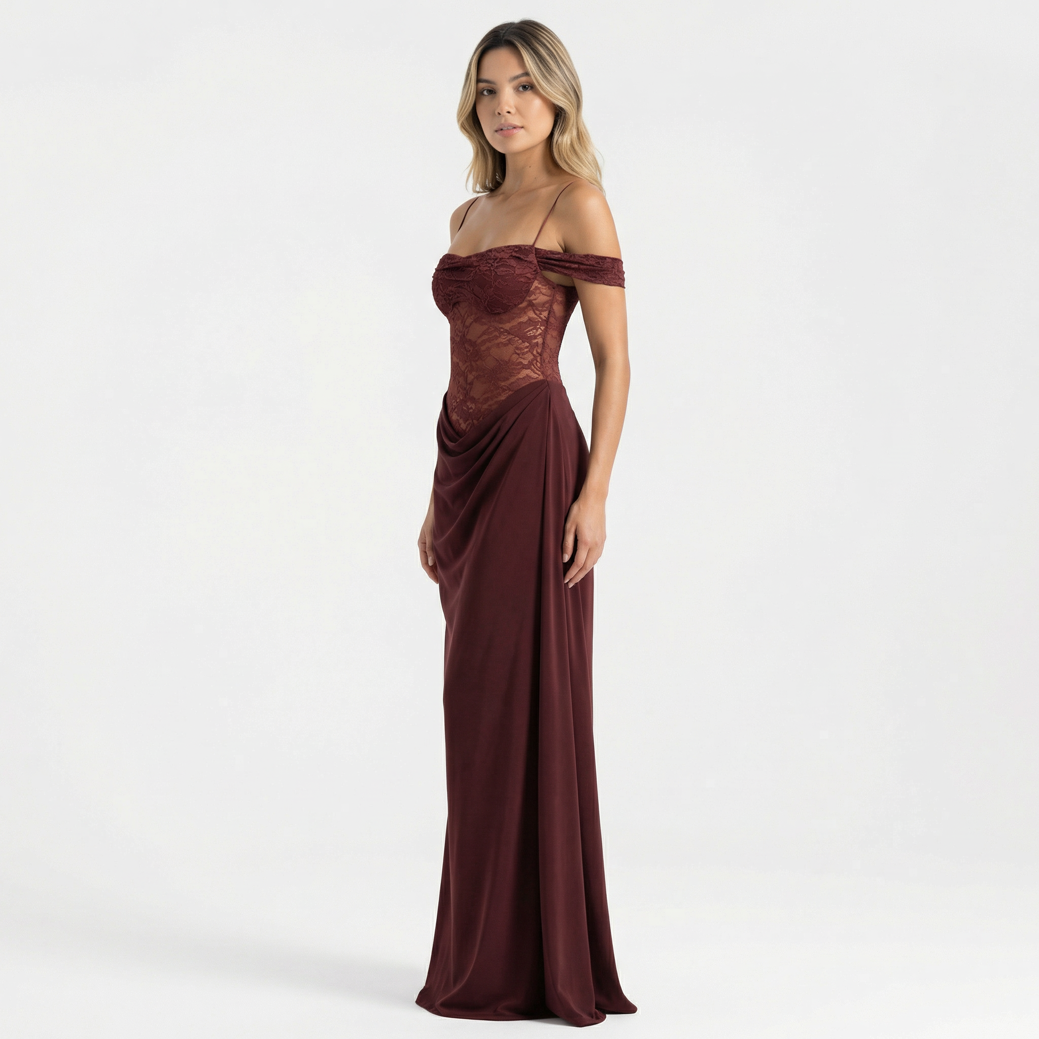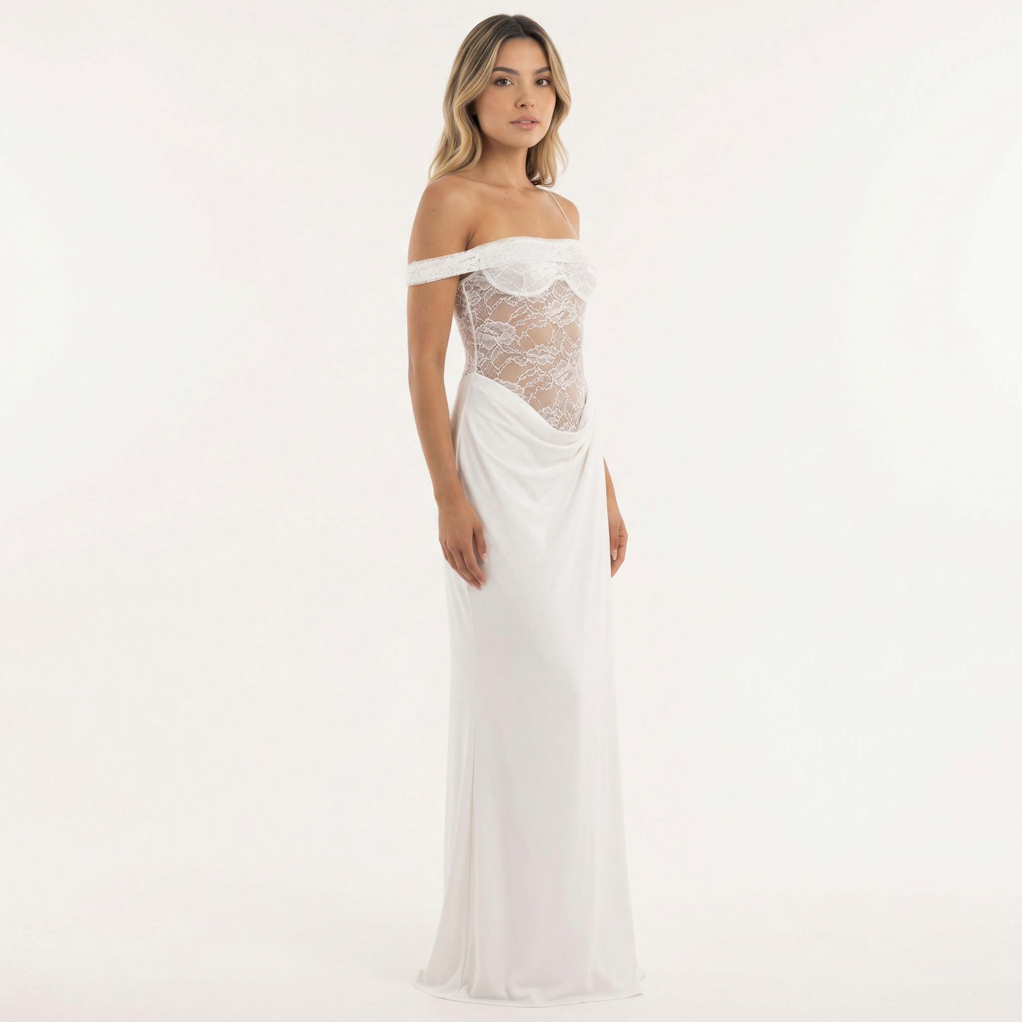• Design asymétrique à une épaule avec de la dentelle semi-transparente.