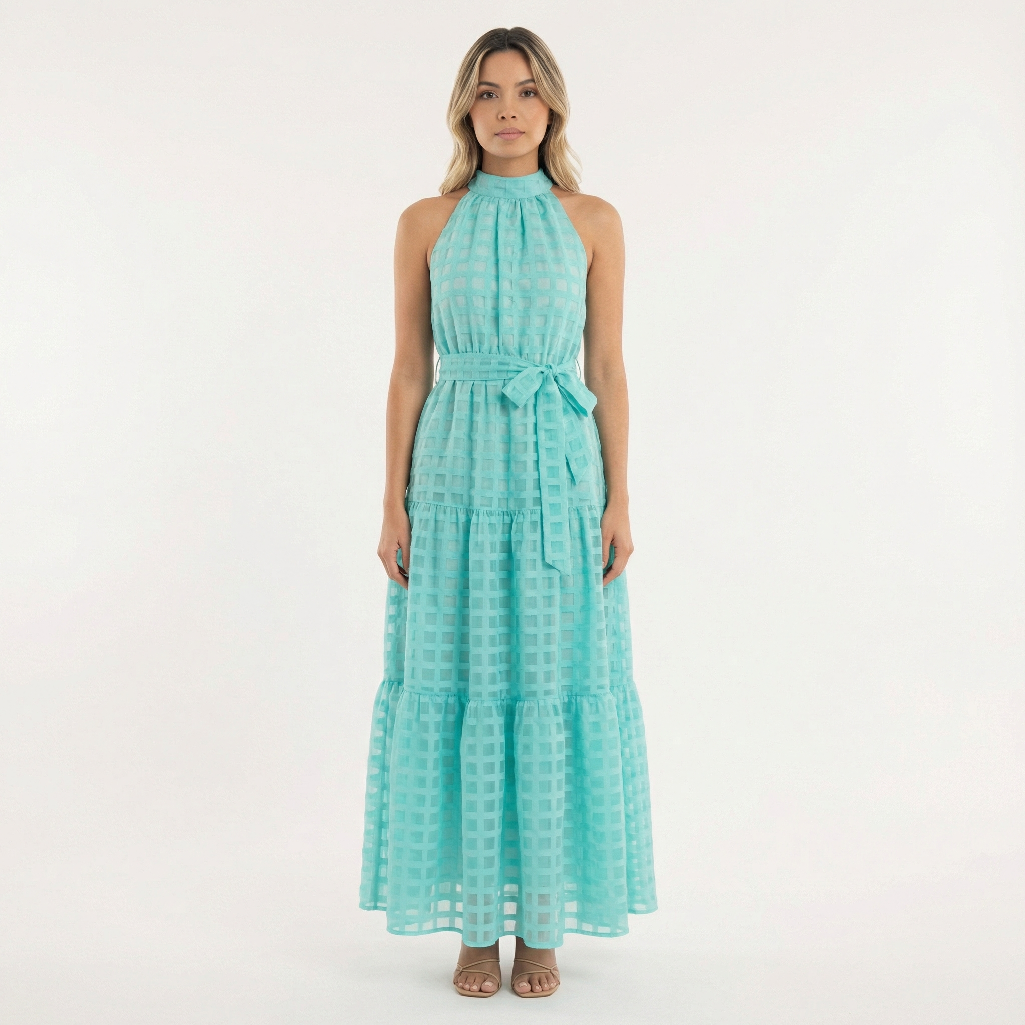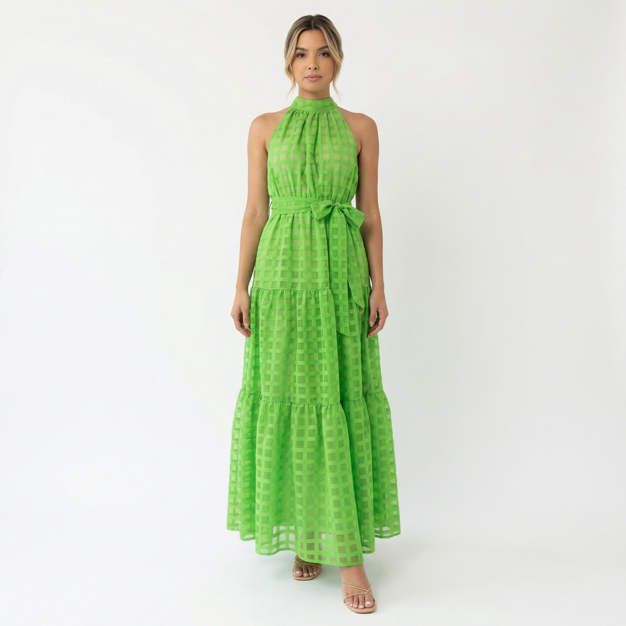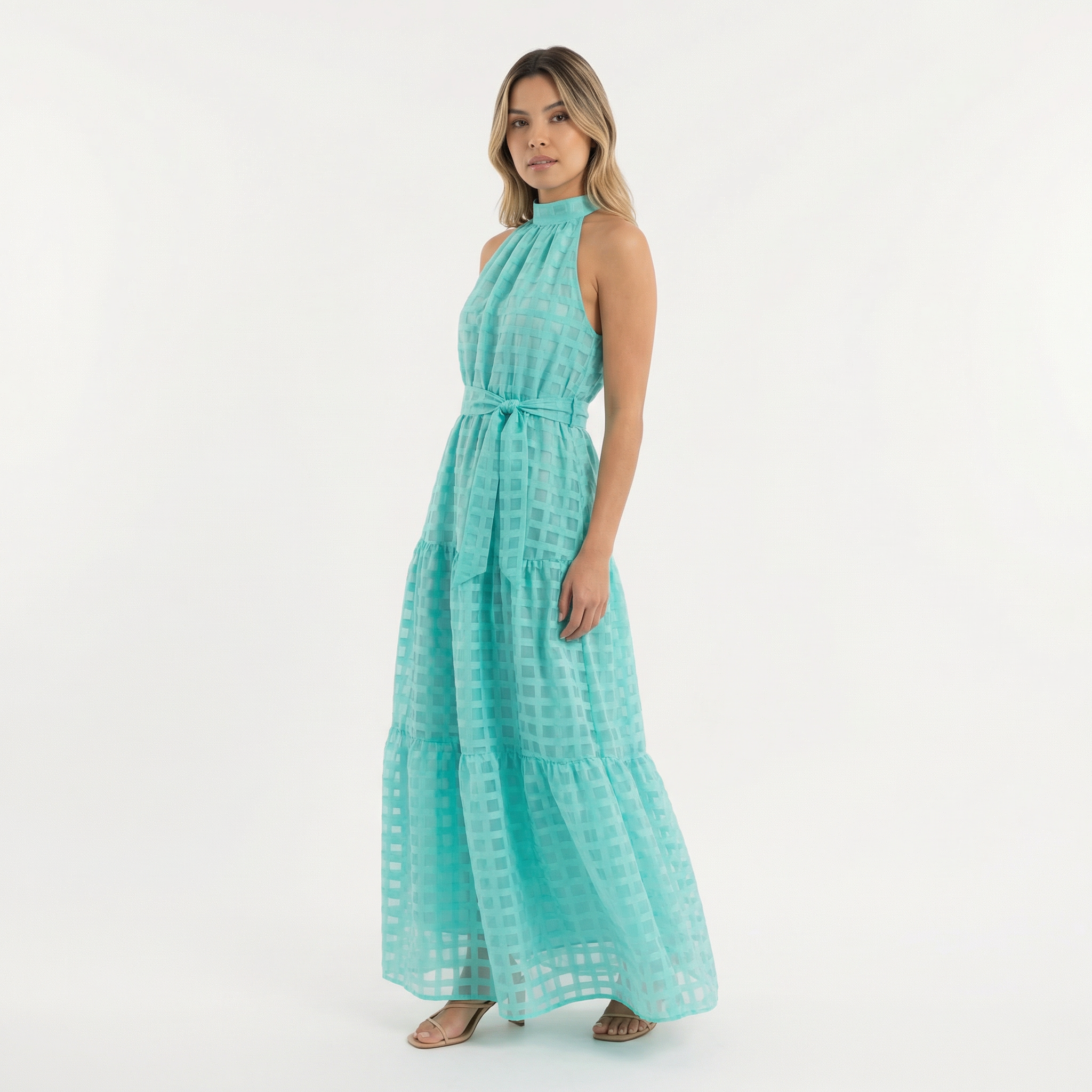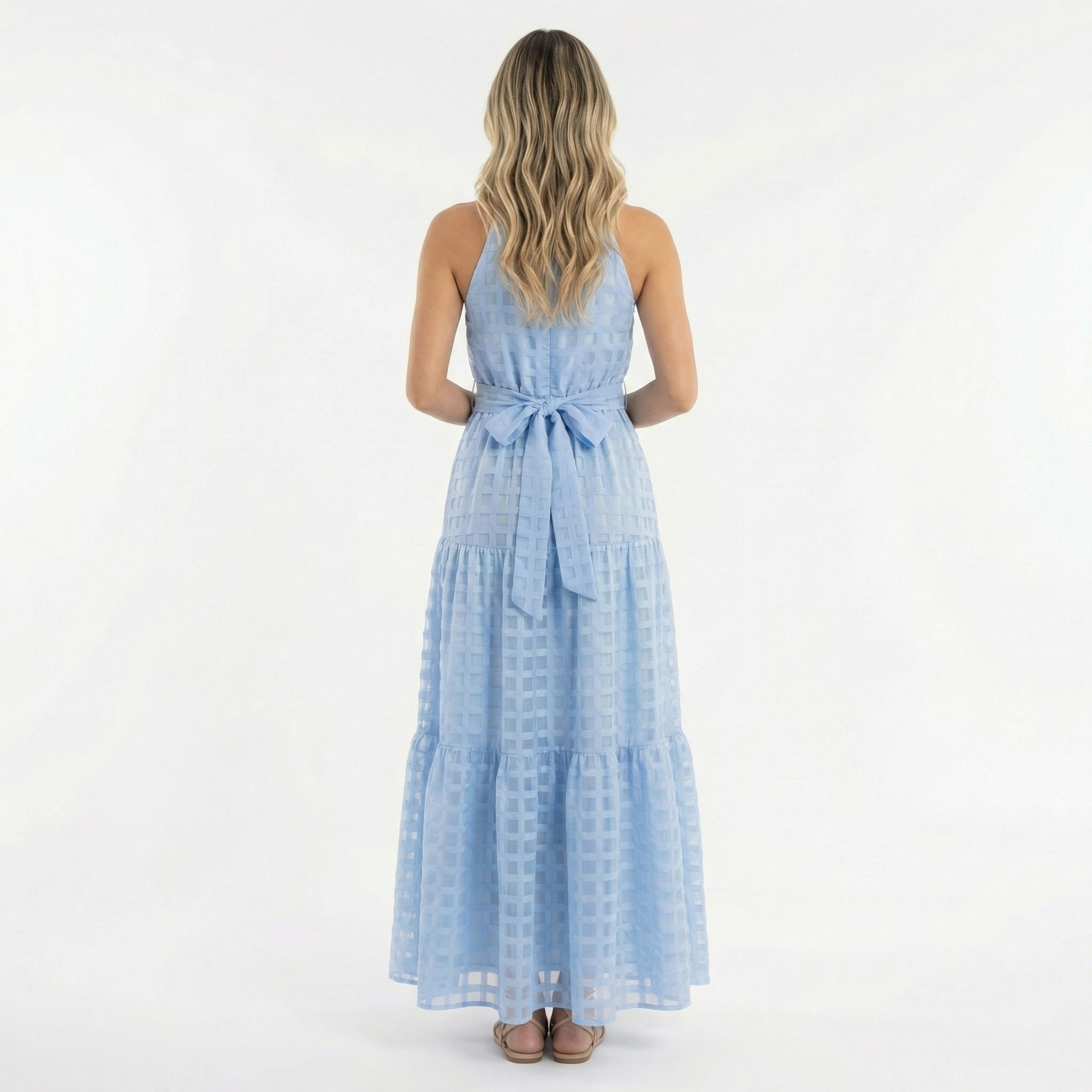 Cette robe longue présente un design fluide qui allie légèreté et raffinement. Idéale pour les saisons printanières et estivales, elle convient à diverses occasions, allant des journées décontractées aux événements plus formels.