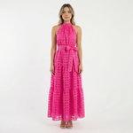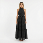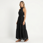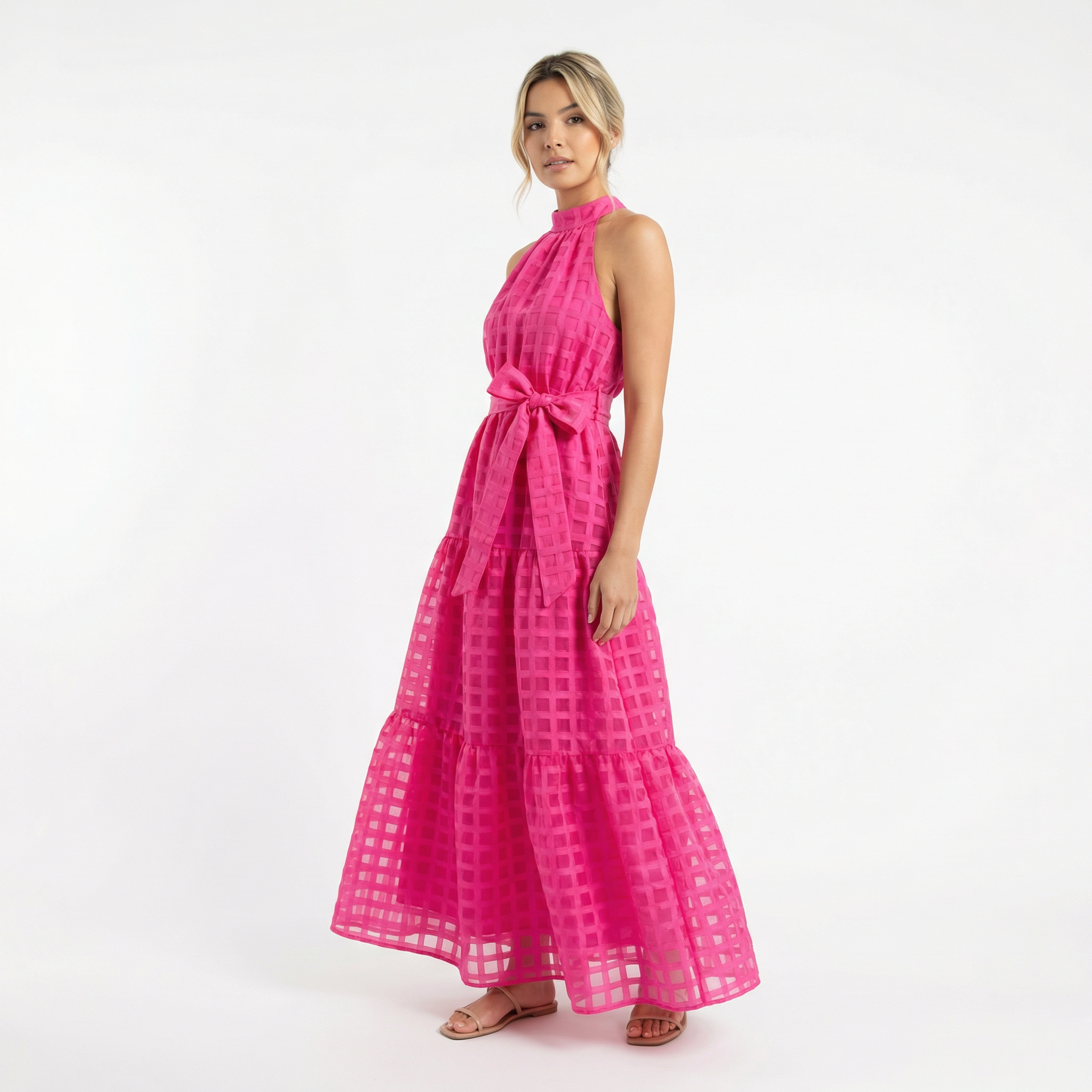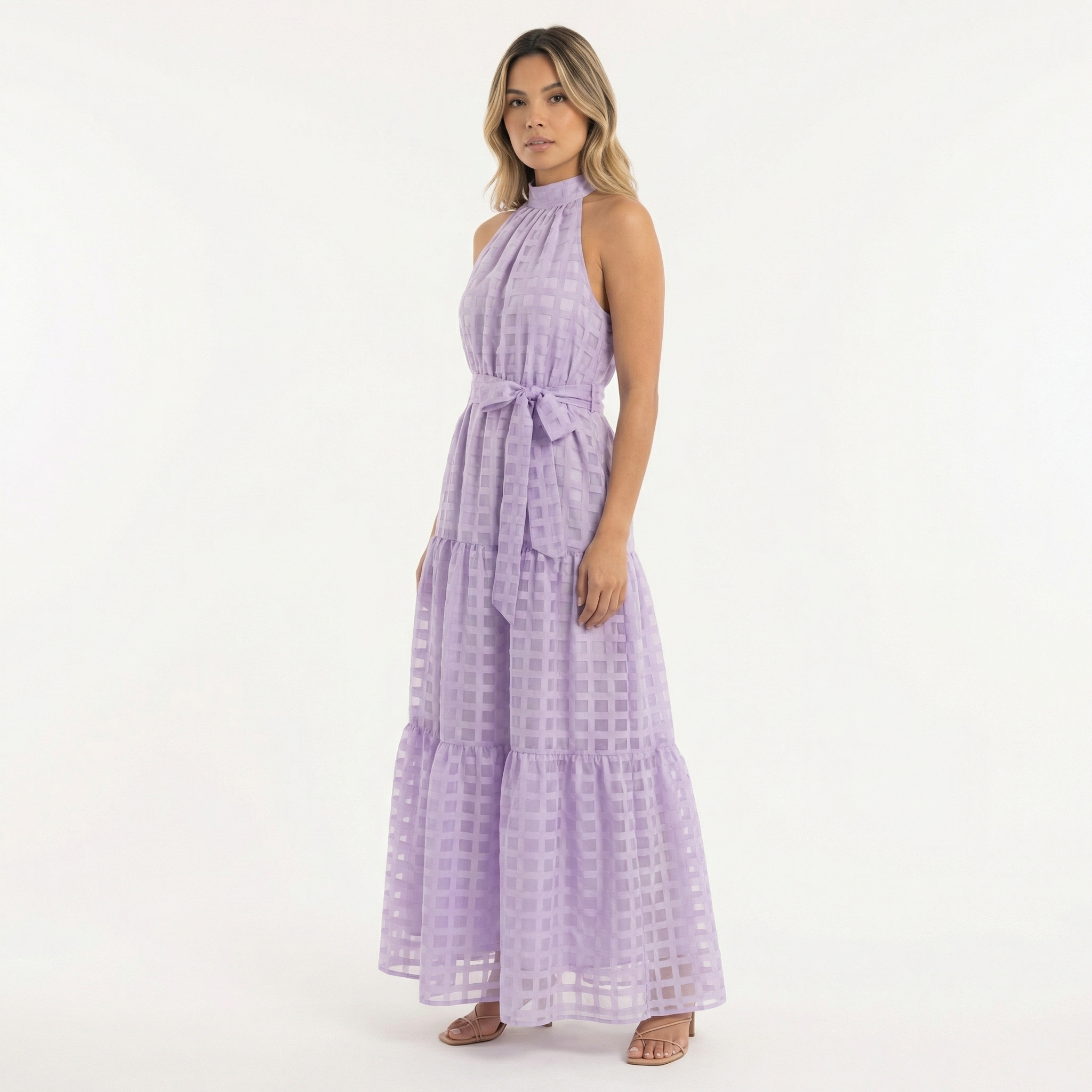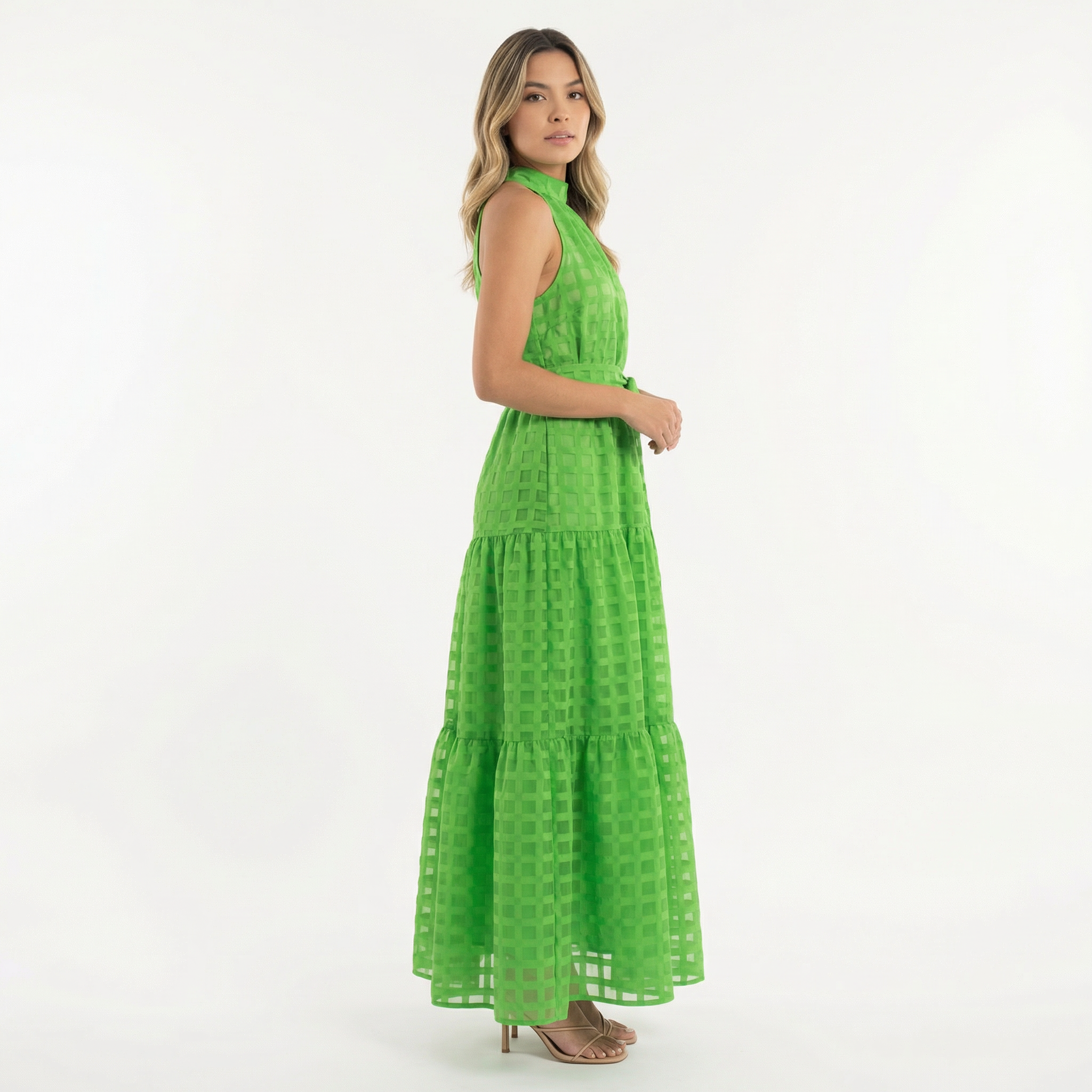 Cette robe longue présente un design fluide qui allie légèreté et raffinement. Idéale pour les saisons printanières et estivales, elle convient à diverses occasions, allant des journées décontractées aux événements plus formels.