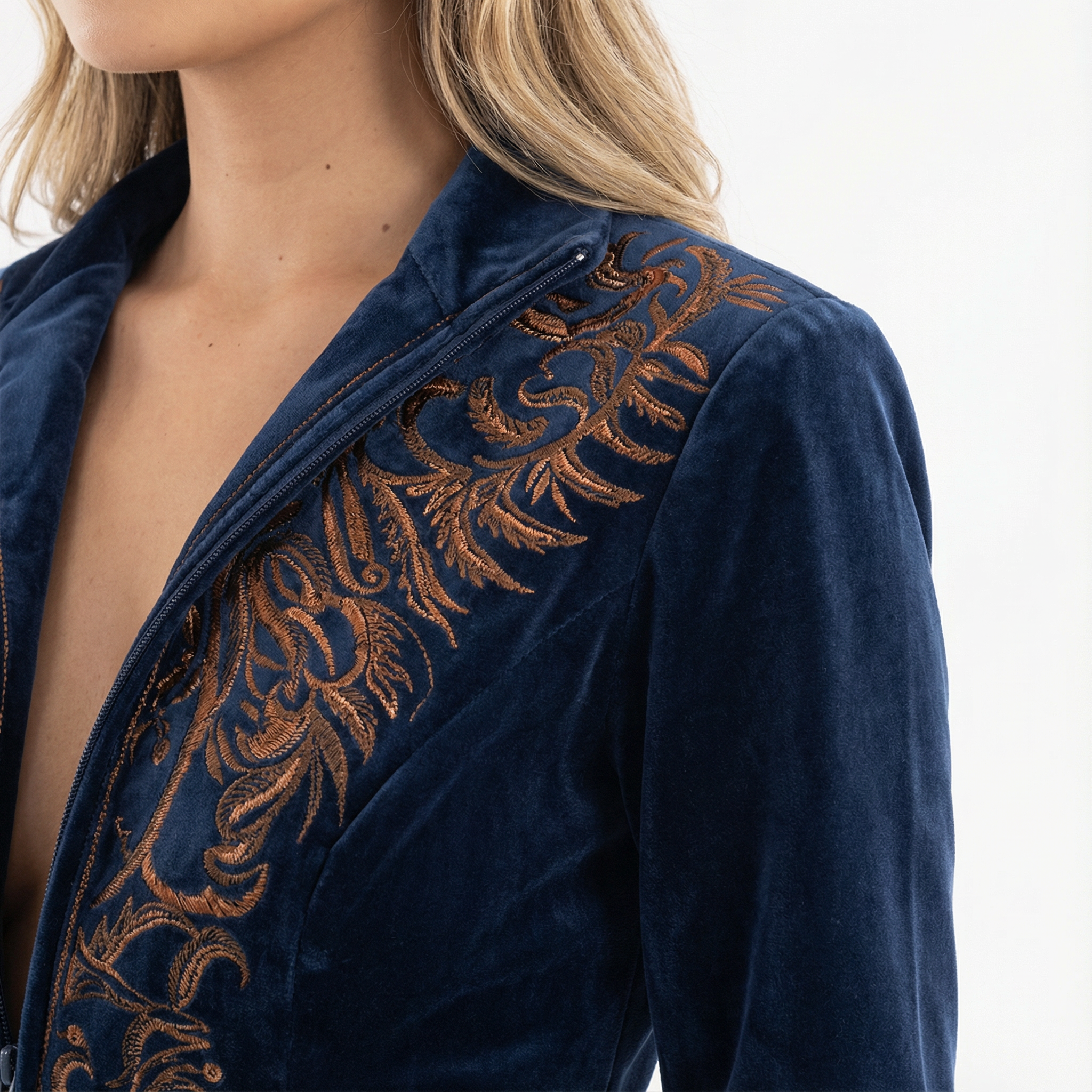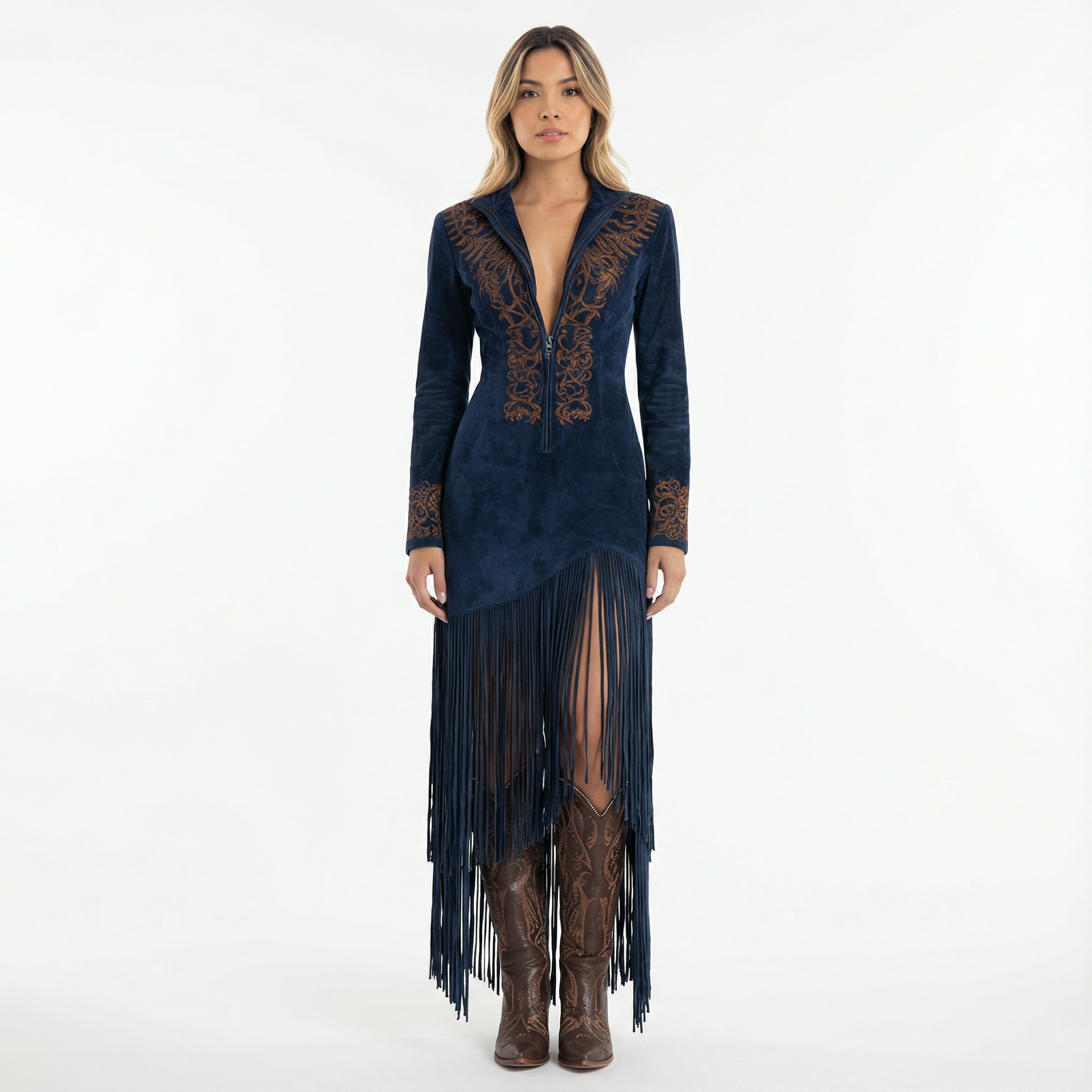 Robe longue brodée à fermeture éclair