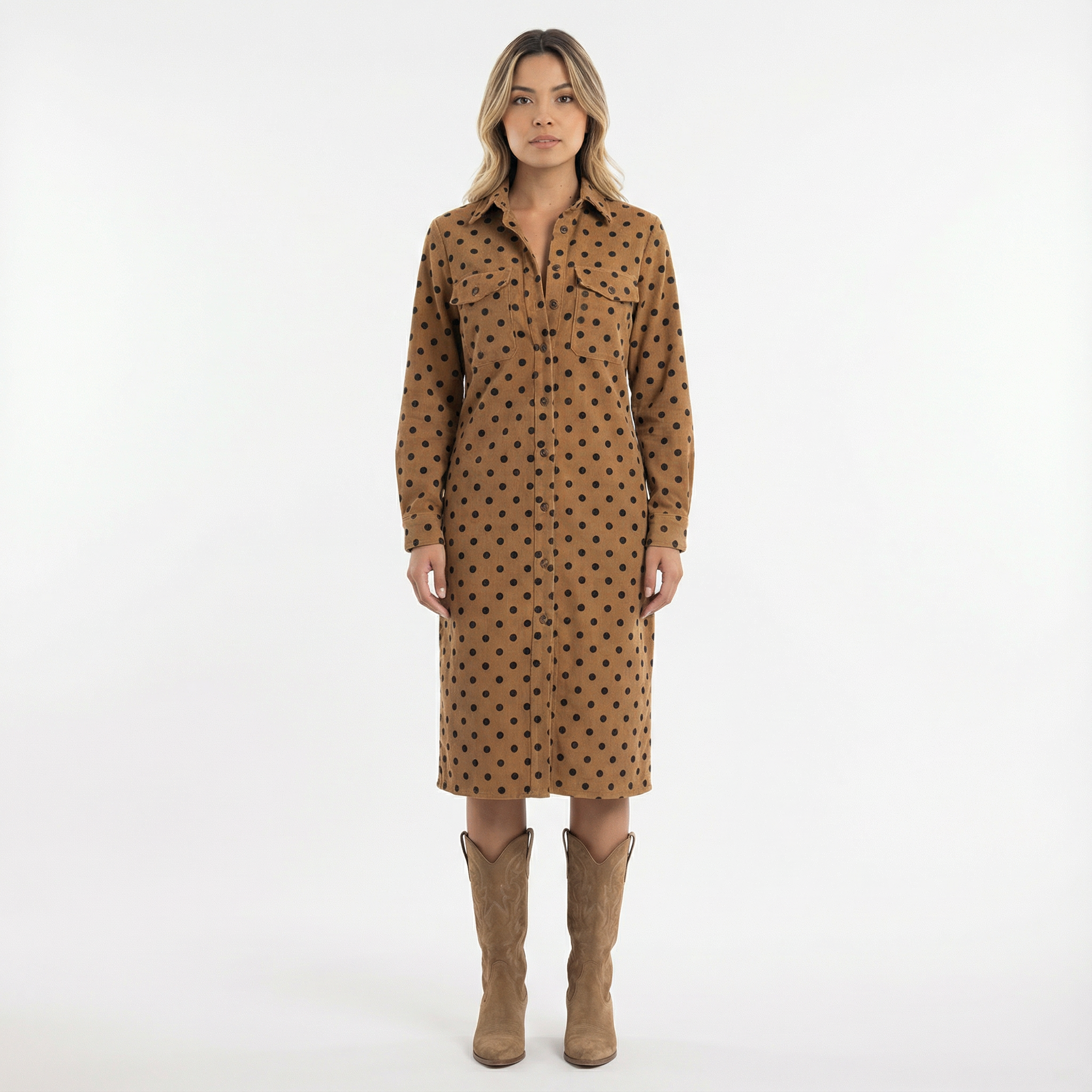 Robe midi chemise en suède élégante femme