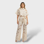 - Pantalon à jambes larges avec ceinture intégrée.