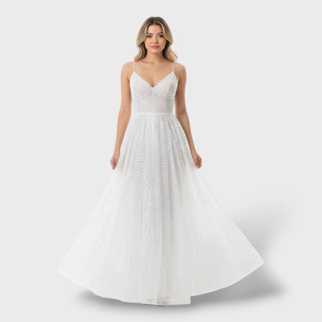 Cette pièce offre une silhouette en A qui sublime la figure avec grâce. Sa conception unique attire l'attention grâce à des détails raffinés, idéale pour des événements formels ou des occasions spéciales.